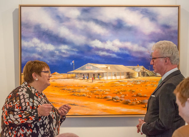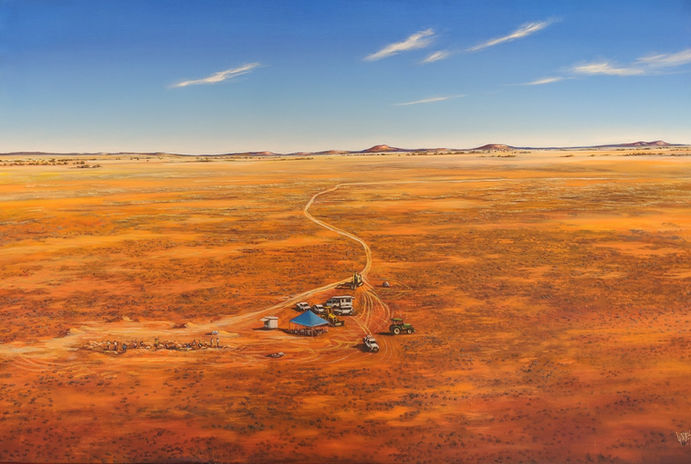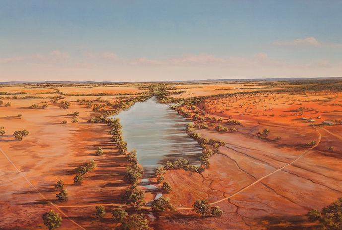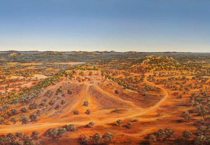 Although having undertaken many incredible ventures through her art career, the latest opportunity to view Lyn’s work will be at the Quilpie airport—an installation of three large oil works depicting the beautiful sights of Quilpie. Proudly displaying the beauty of our Outback often unseen, the three paintings focus on the natural waterhole Lake Houdraman, the red rock formation ‘Baldy Top’, and the dinosaur dig site near Eromanga.